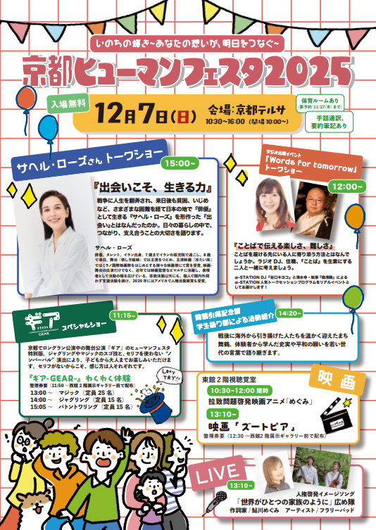 12月7日(日曜日)に「京都ヒューマンフェスタ2025」を開催します。